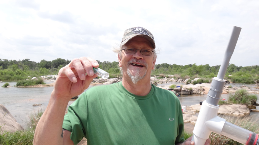 Michael Ballard with his nugget and sucker tube he used to find it.